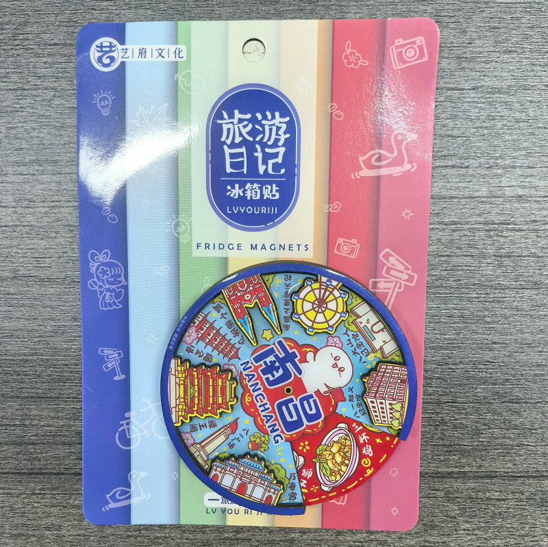 木质滴胶可旋转圆形磁吸贴旅游纪念品冰箱贴国潮各大城市冰箱贴