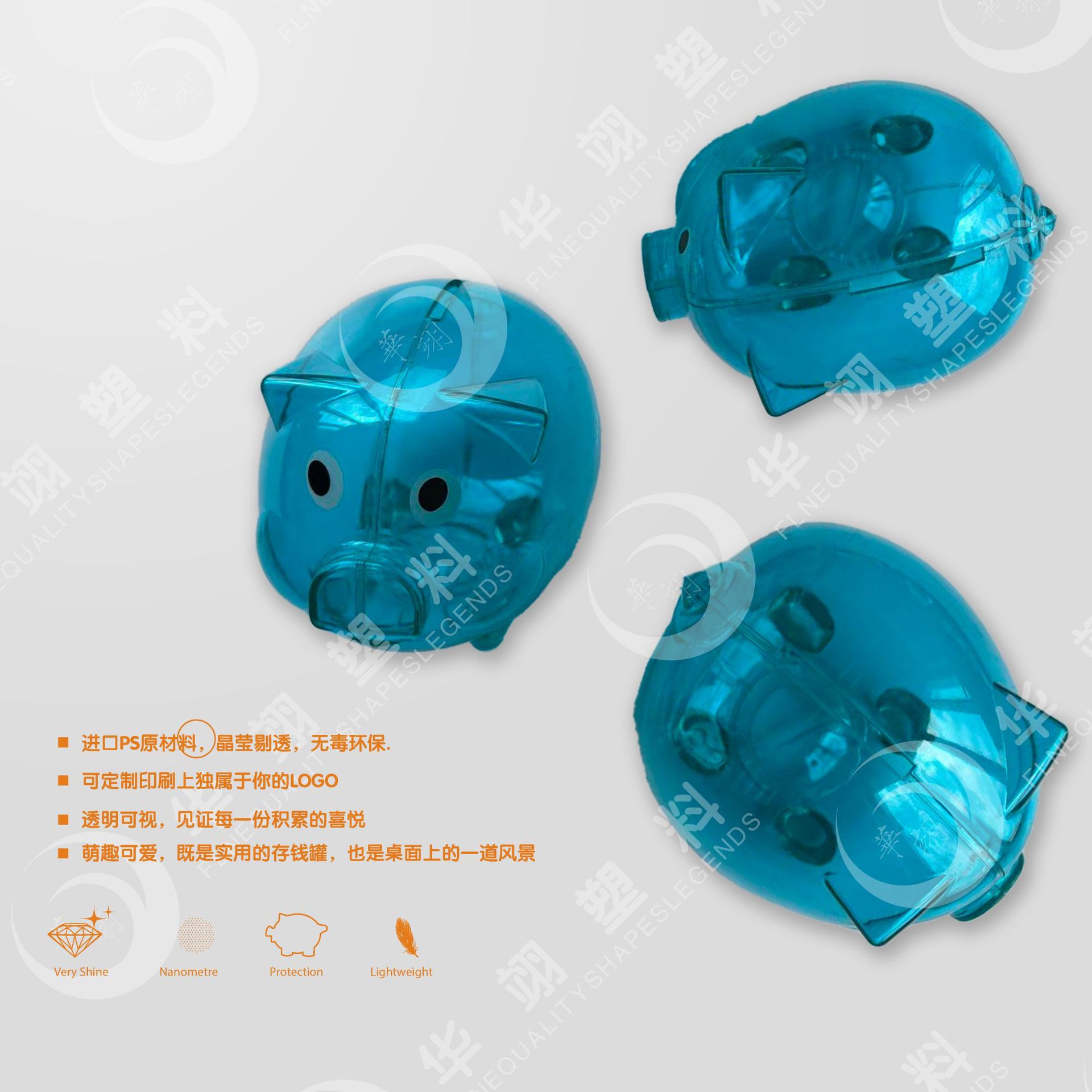 猪储钱罐 创意卡通塑料存钱箱 透明GPPS存钱罐宁波厂家热销批发