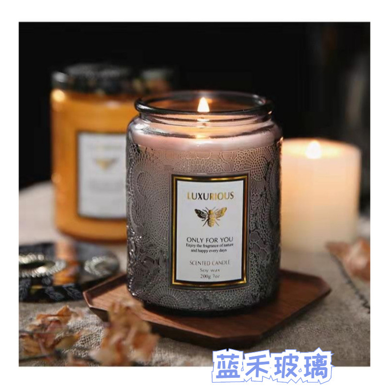 DIY香薰蜡烛杯浮雕空杯彩色花纹玻璃瓶无火香氛玻璃罐无烟蜡烛杯