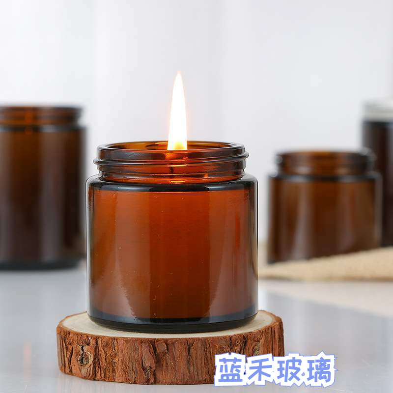 厂家供应铝盖棕罐蜡烛杯烛台香薰蜡烛容器茶色杯子棕色简约玻璃罐