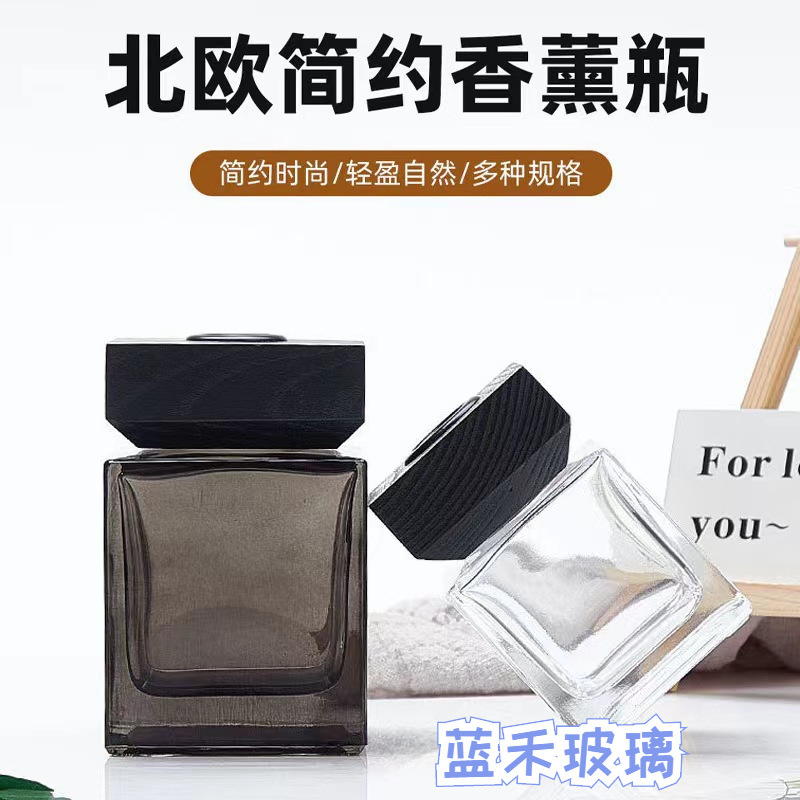 新款扁方玻璃螺口无火插花透明香薰瓶香水空国酒瓶浮游干花藤条瓶
