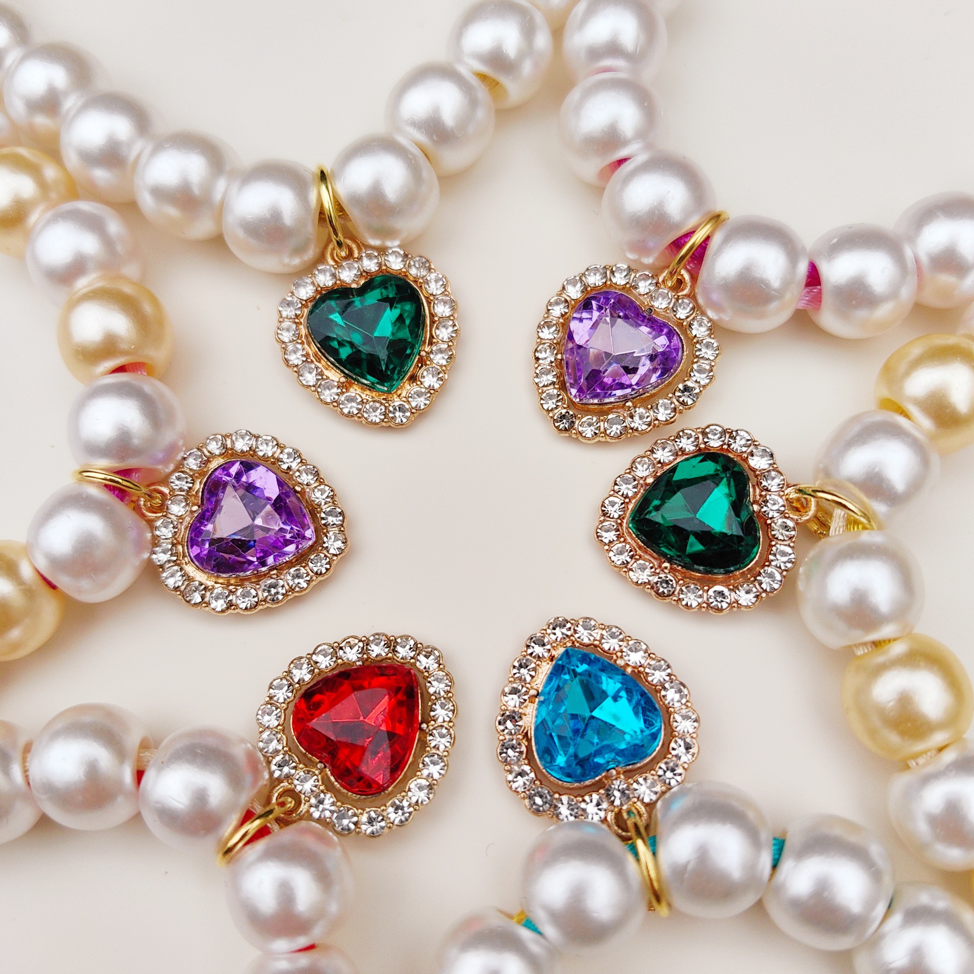 热销跨境宠物项链时尚外贸仿珍珠爱心宝石吊坠多色可选猫狗饰品