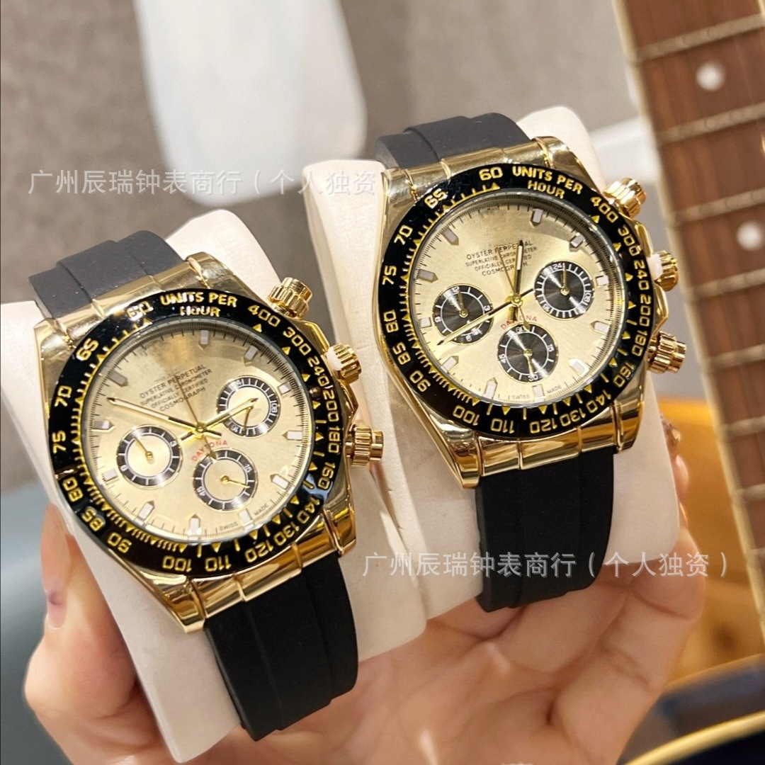 速卖通劳家外贸游艇名仕陶瓷圈金游艇白金男士手表橡胶表带批发