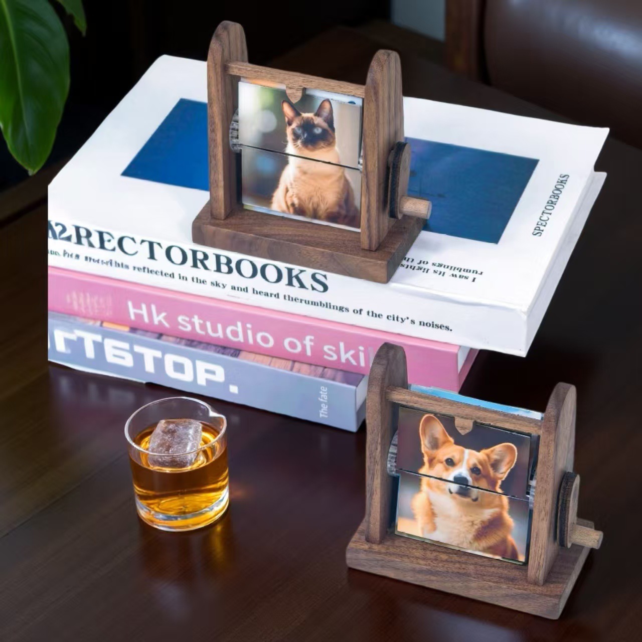 跨境 亚马逊一件定制POD独立站ETSY爆款热卖木质方形手摇照片灯