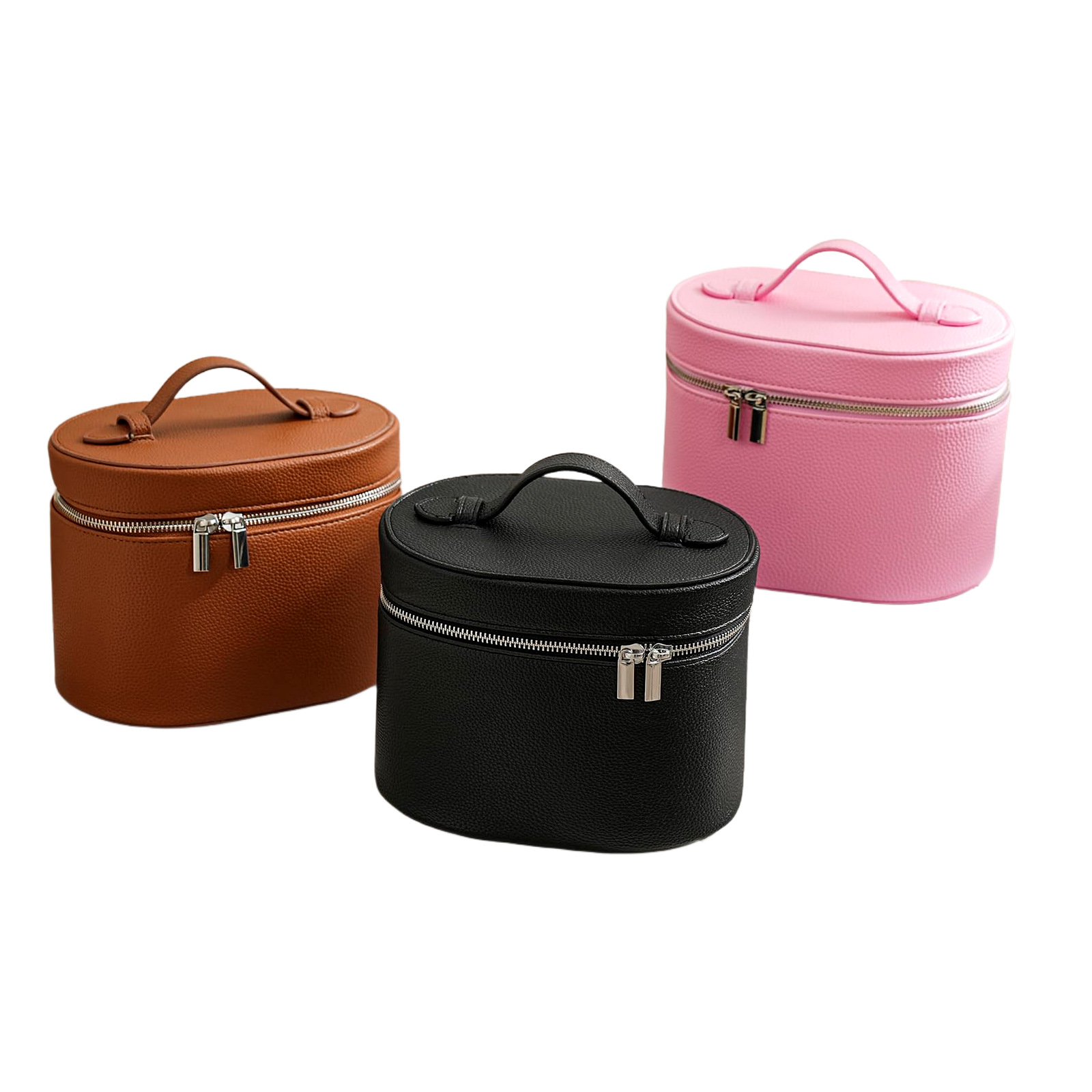 跨境荔枝纹2025新款大容量旅行便携收纳轻便分格整理化妆女包水桶