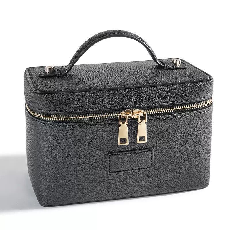 外贸荔枝纹皮革化妆包手提斜跨肩带PU皮革化妆箱大容量旅行化妆包