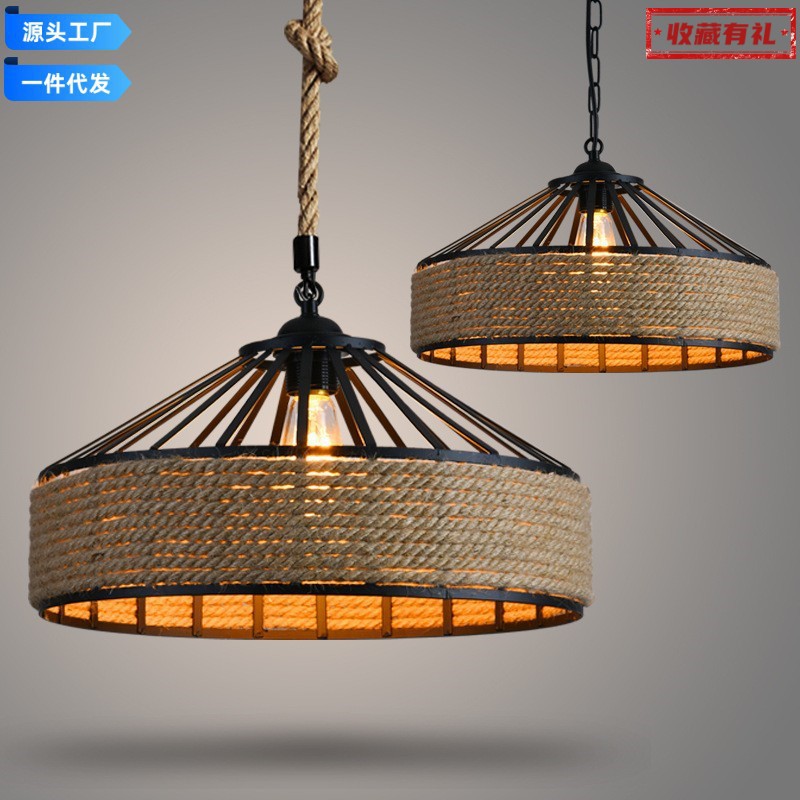 美式乡村麻绳吊灯蒙古包复古工业风个性麻绳创意餐厅铁艺酒吧灯具