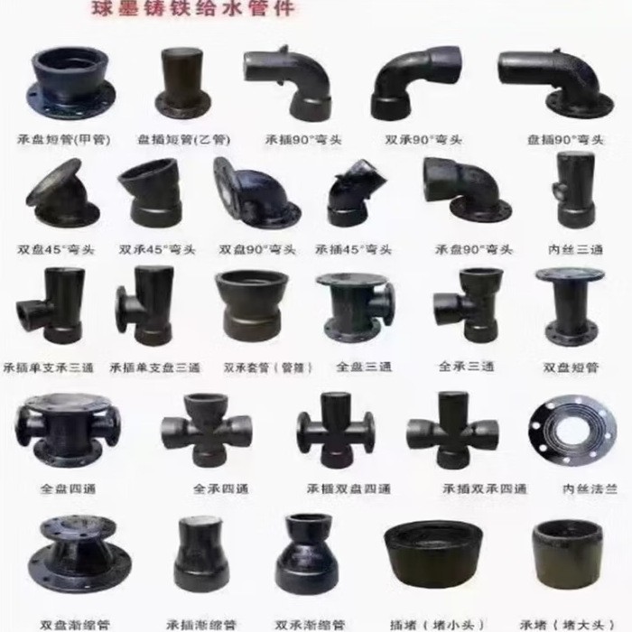 球墨铸铁管配件盘承插盘甲乙短管弯头 三通 四通变径铸铁管件黑色