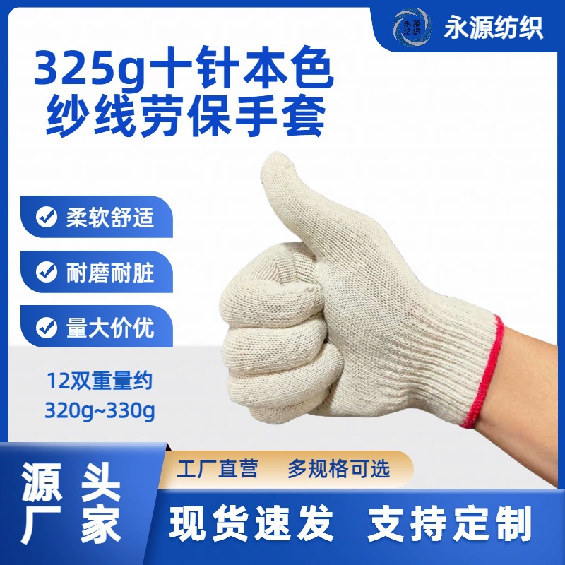 325-600g本白 棉纱劳保手套 装配机械五金加工物流搬运工地批发价