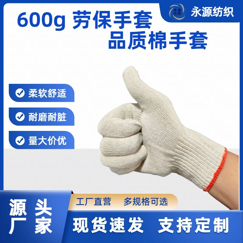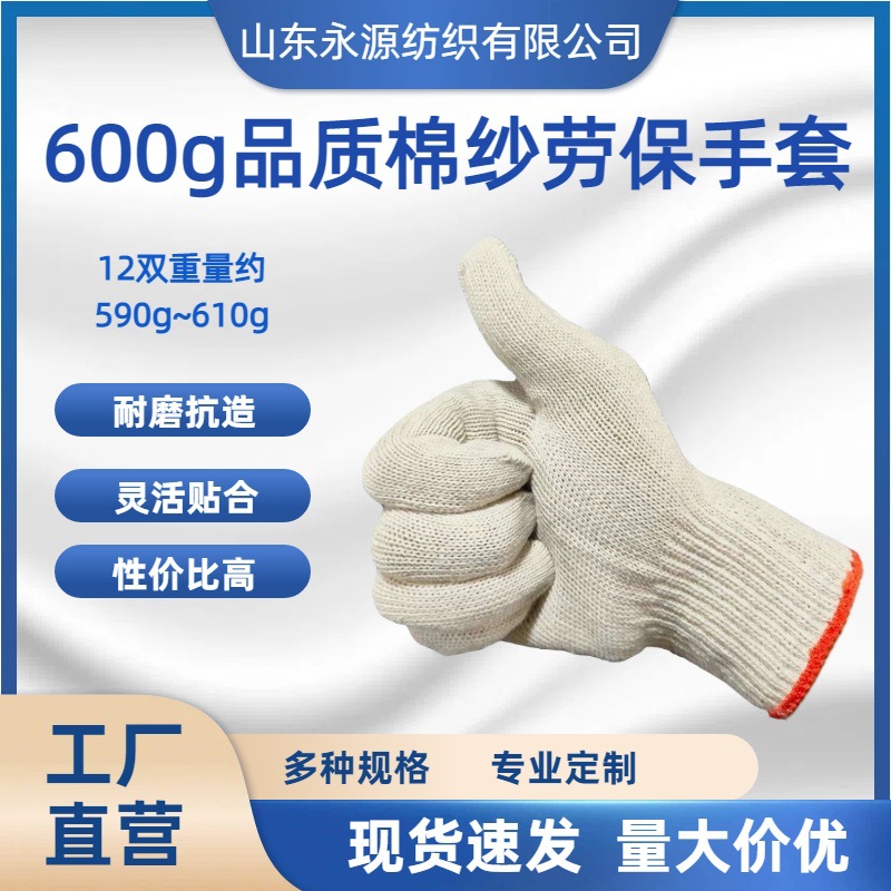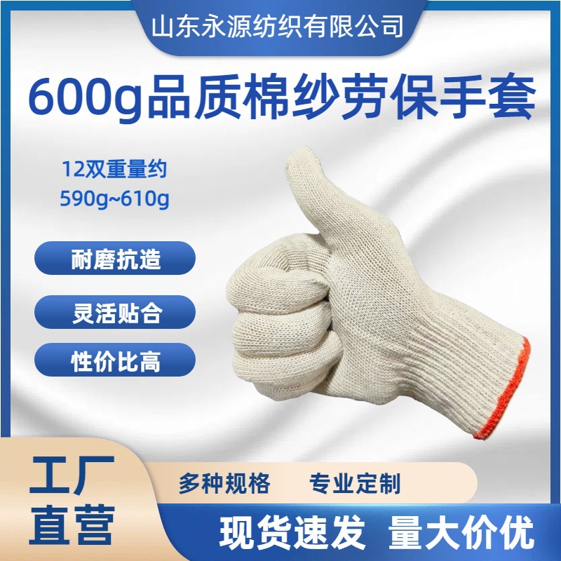 600g劳保手套棉纱线 耐磨透气防滑 工地作业工程维修专用爆款推荐