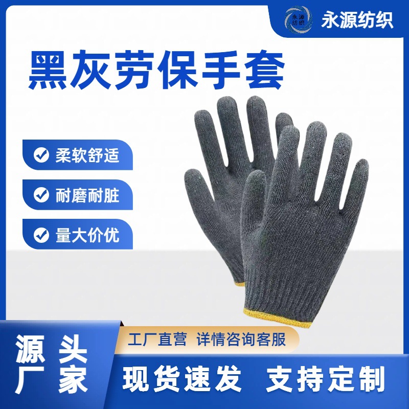 批发价爆款推荐 耐磨透气防滑劳保手套黑灰纱线棉 源头工厂批发价