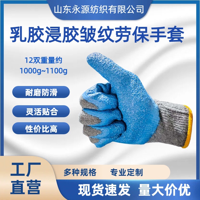 乳胶浸胶皱纹劳保手套 防滑透气耐磨加厚 机械维修等作业厂家直销