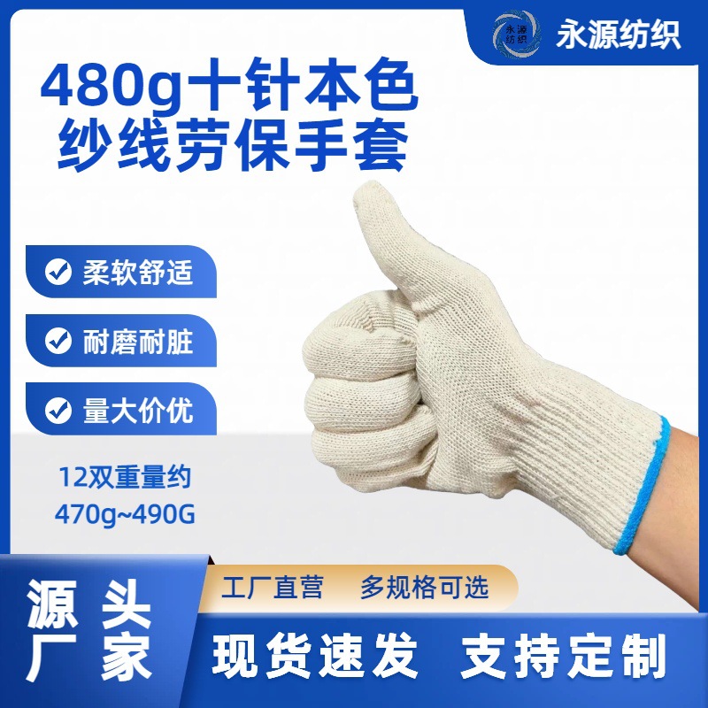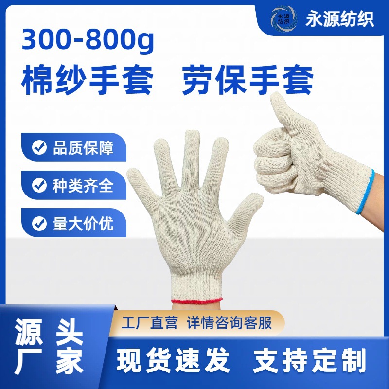 批发480g劳保手套棉纱线 耐磨透气防滑 源头工厂爆款推荐量大价优