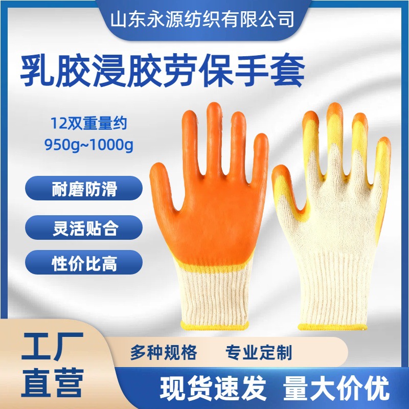 十针爆款乳胶双色浸胶 加厚耐磨防滑耐油劳保手套 工厂价建筑工地