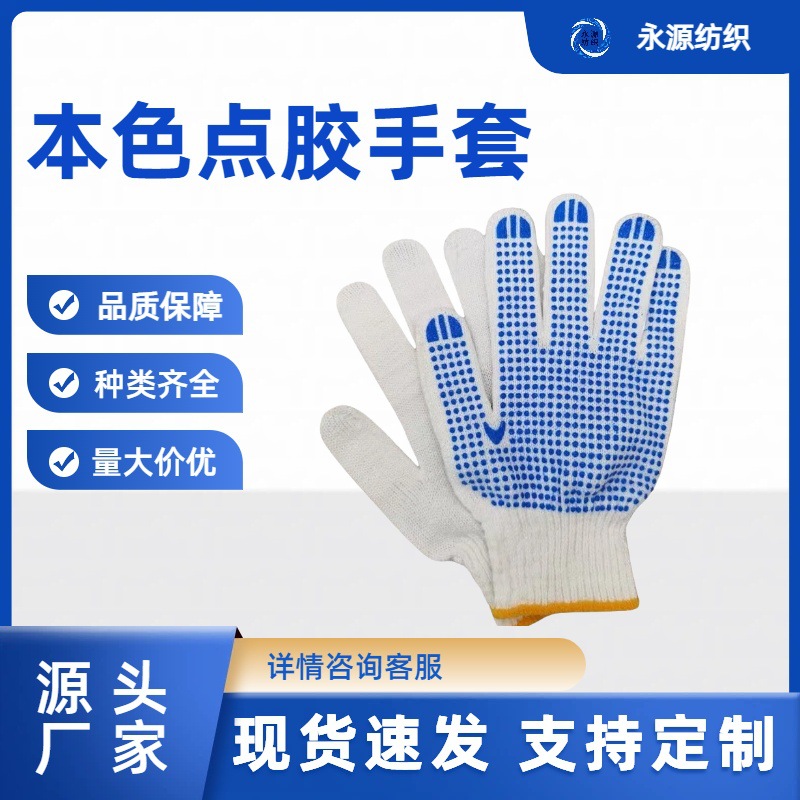 批发价爆款推荐耐磨透气防滑 蓝点点胶 劳保纱线点胶手套源头工厂