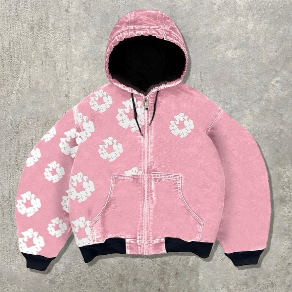 欧美街头潮流风Y2K嘻哈时尚拉链印花连帽衫卫衣开衫休闲男女外套