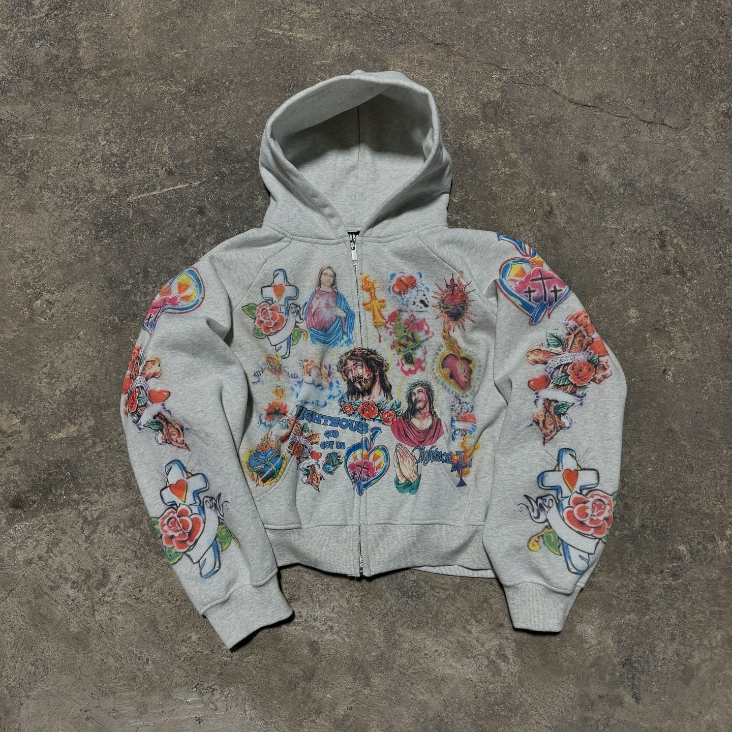 跨境2025卫衣RIGHTEOUS卡通3D印花连帽拉链卫衣休闲宽松新货批发