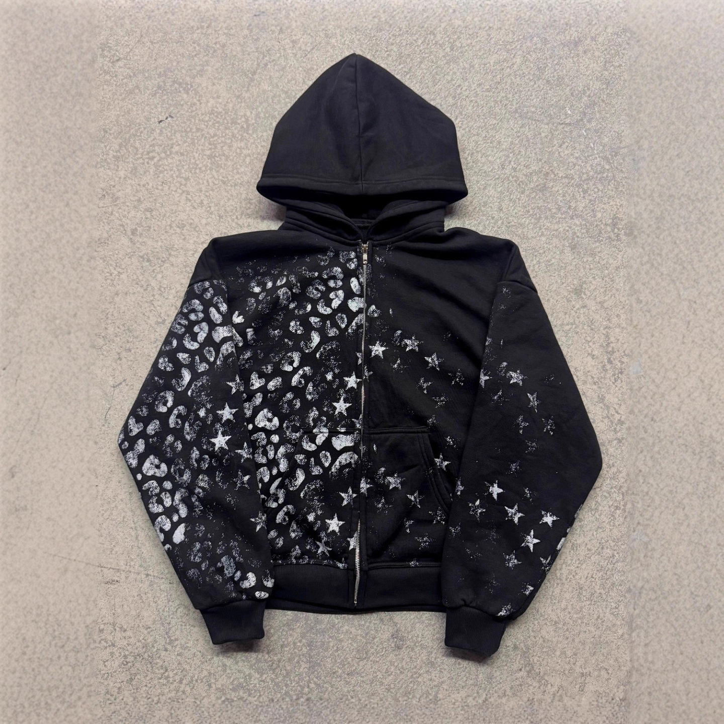 美式暗黑系复古印花连帽衫街头新款潮流拉链原宿宽松男女同款卫衣