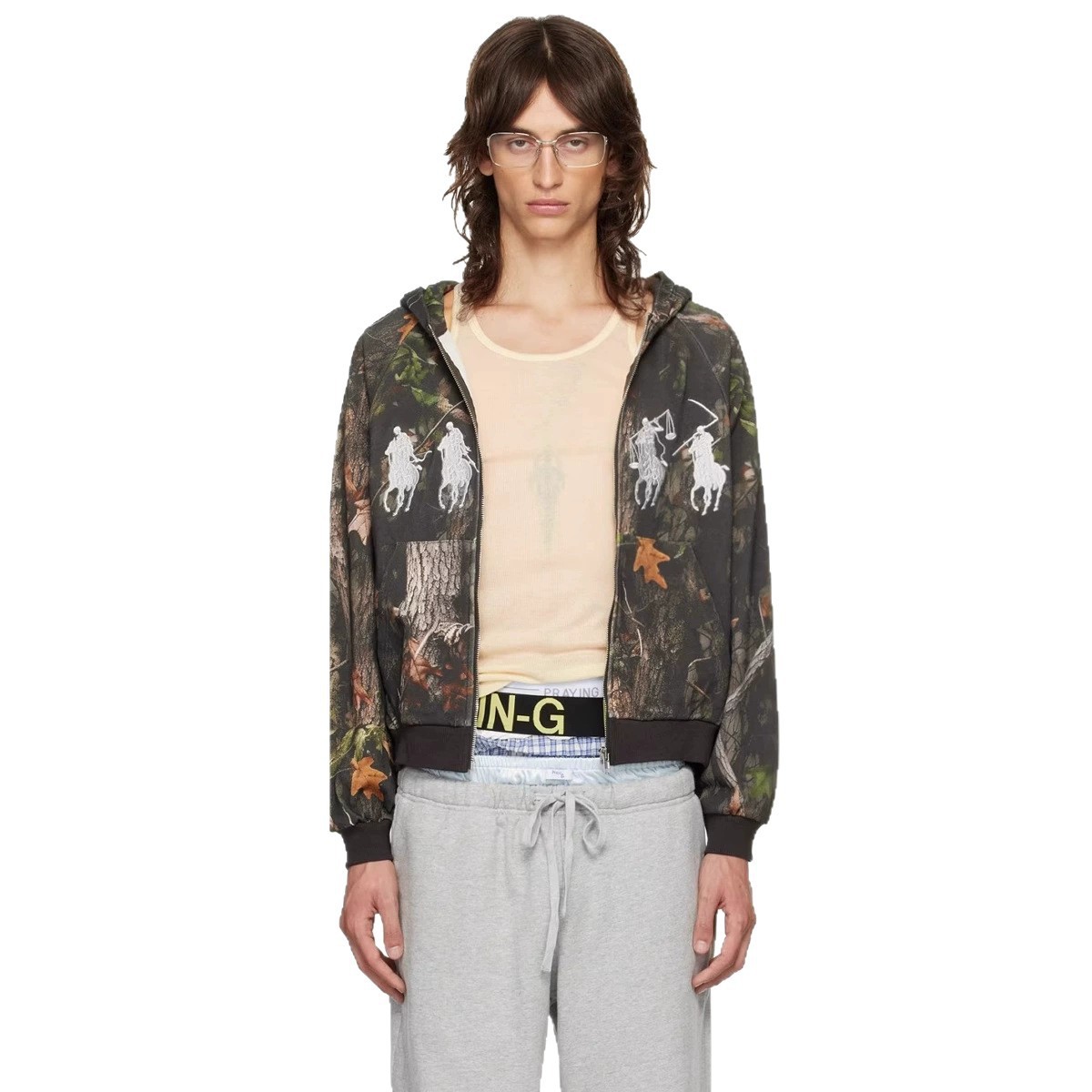 迷彩宽松连帽卫衣外套上衣现货跨境潮流新款美式男女白马图案印花