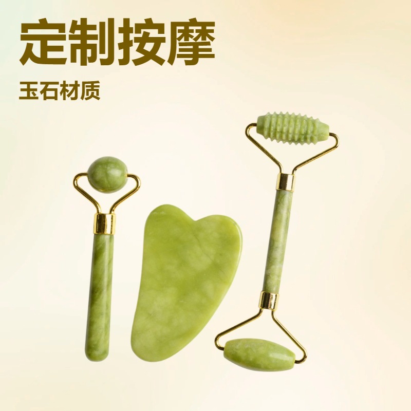 玉石滚轮按摩器岫玉刮板岫岩玉滚轮美容棒半宝石经络推脸仪批发