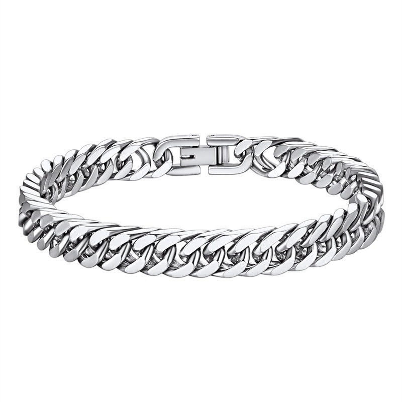 跨境欧美钛钢手链穿搭配饰简约个性嘻哈手链不锈钢六面磨古巴链
