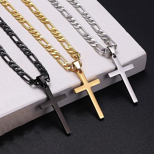 新款十字架吊坠项链镜面饰品不锈钢古巴链男女简约时尚项饰批发