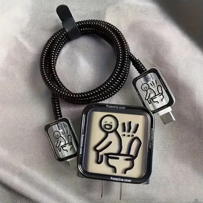 线条人厕所适用苹果13/14/15充电器保护套18w、20w数据线咬线器
