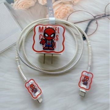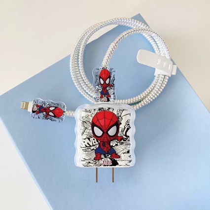适用于苹果20w充电器保护套18w快充充头套数据线套透明蜘蛛侠