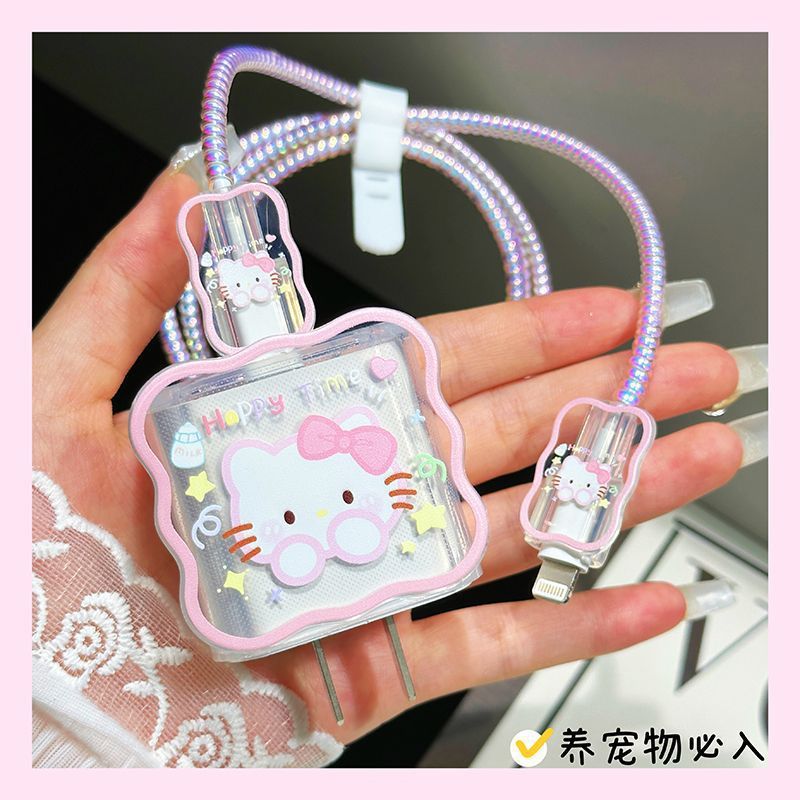 可爱KT猫充电器保护套适用苹果40w快充充电头数据线咬线器
