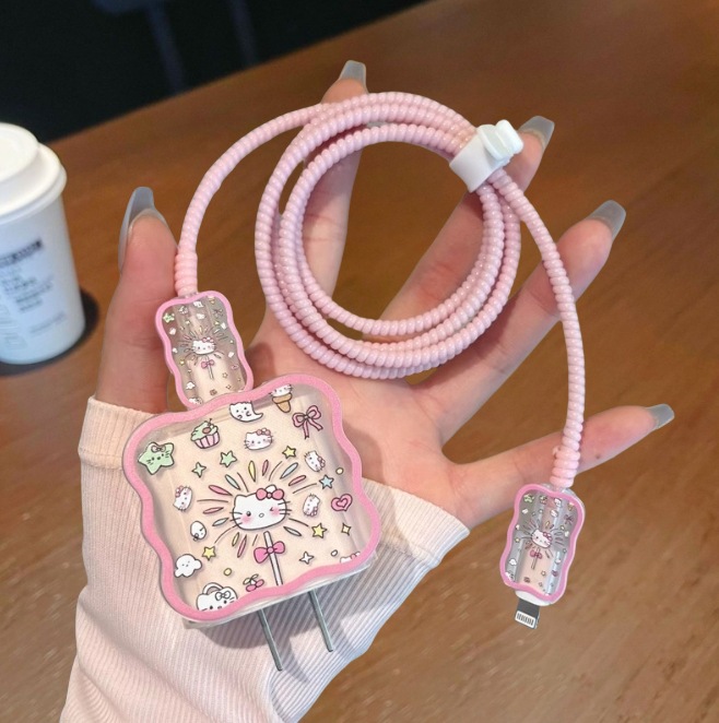 粉色KT猫适用苹果充电头套保护套20w数据线充电器保护套防折波浪