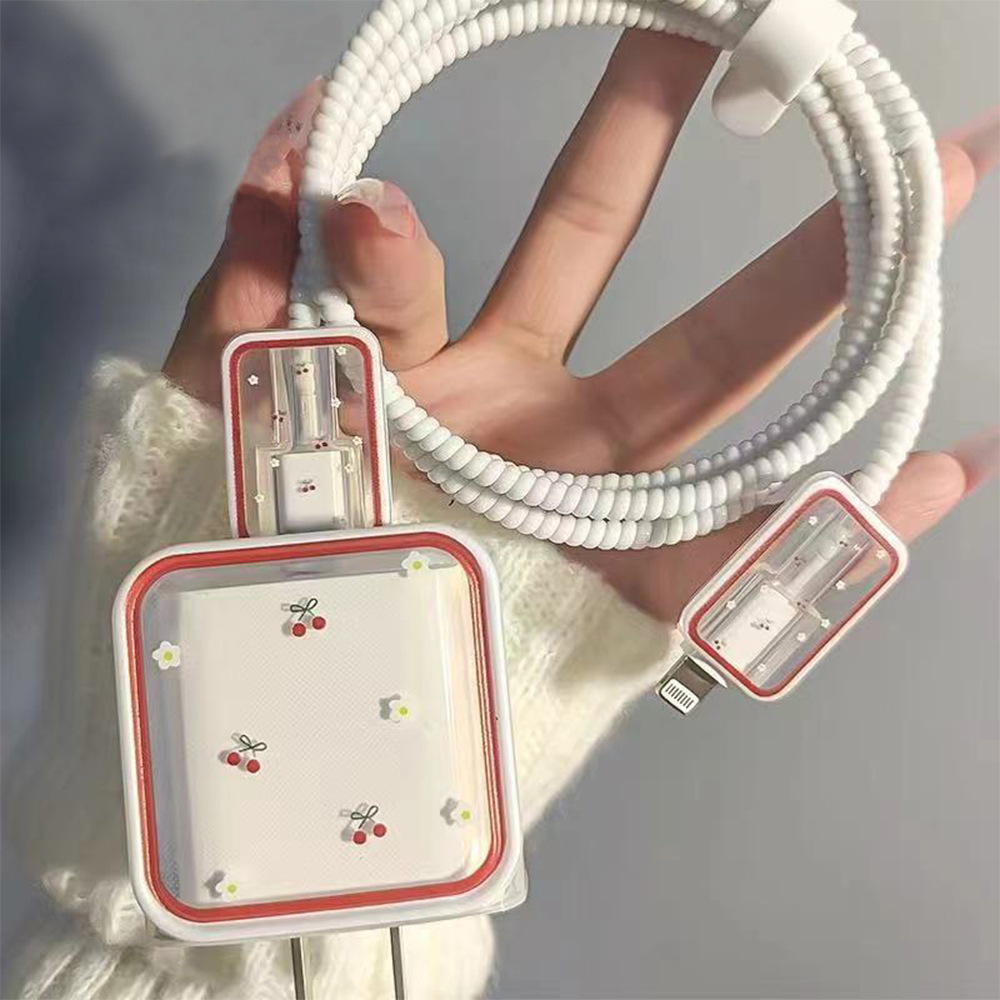 适用苹果手机充电器保护套18/20W数据线保护套透明咬线器切片草莓