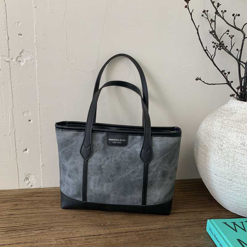 2025撞色拼接大容量上班通勤托特包休闲百搭小众设计简约单肩包女