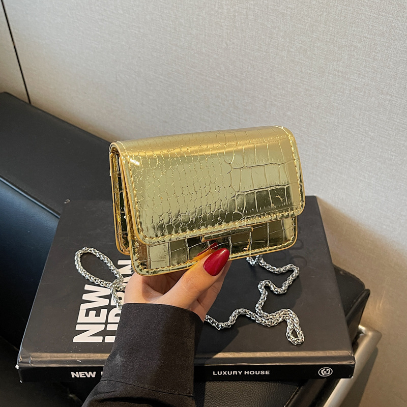 漆皮迷你小包包女2025新款时尚高级感小方包石头纹链条斜挎小方包