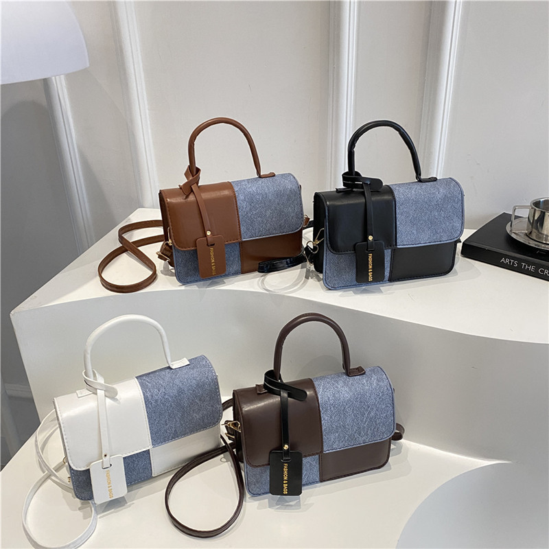 韩版拼接撞色小方包女今年流行复古逛街小包文艺简约单肩斜挎包潮