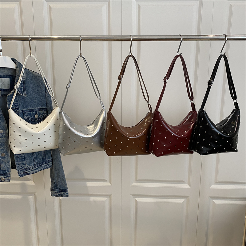跨境大容量包包女夏季2025新款时尚小众铆钉单肩斜挎包通勤饺子包