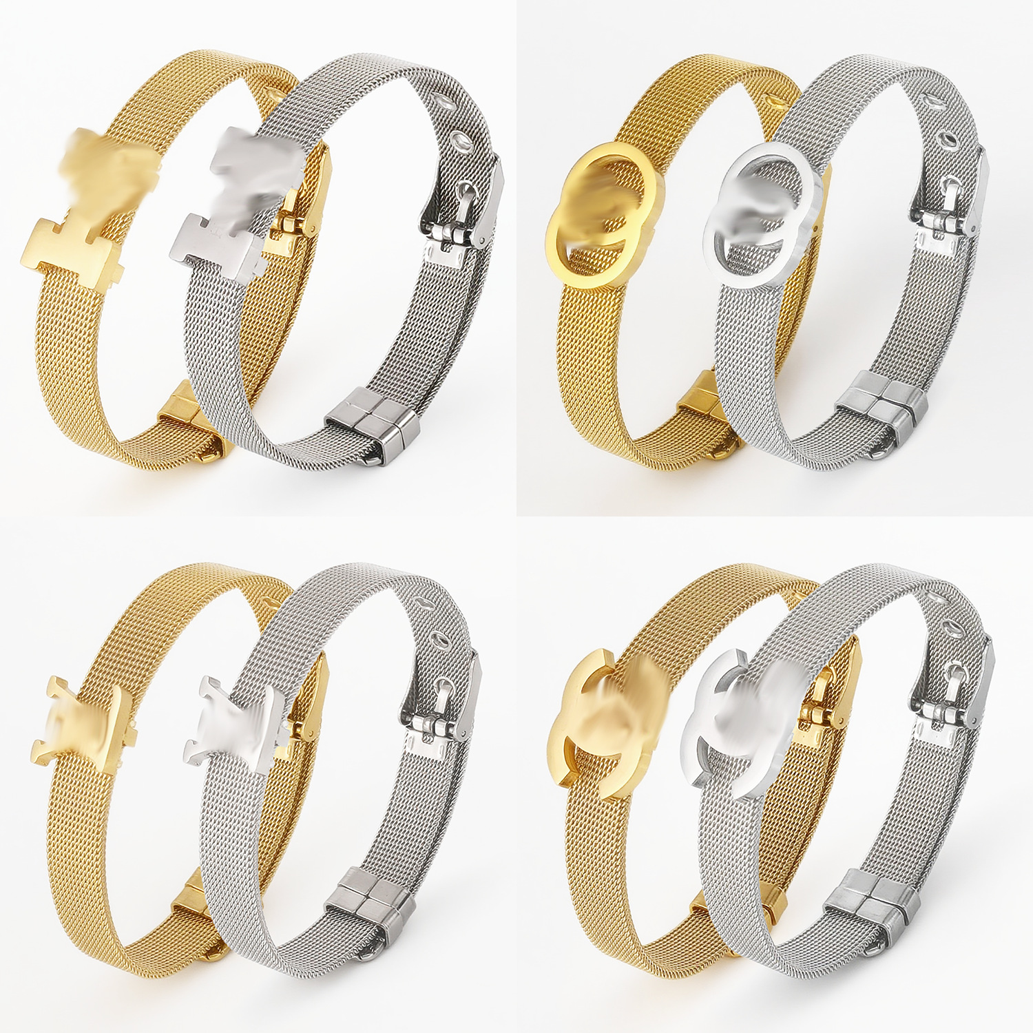 欧美跨境h家驴家双g双c钛钢手镯不掉色饰品网状手表带手环手链