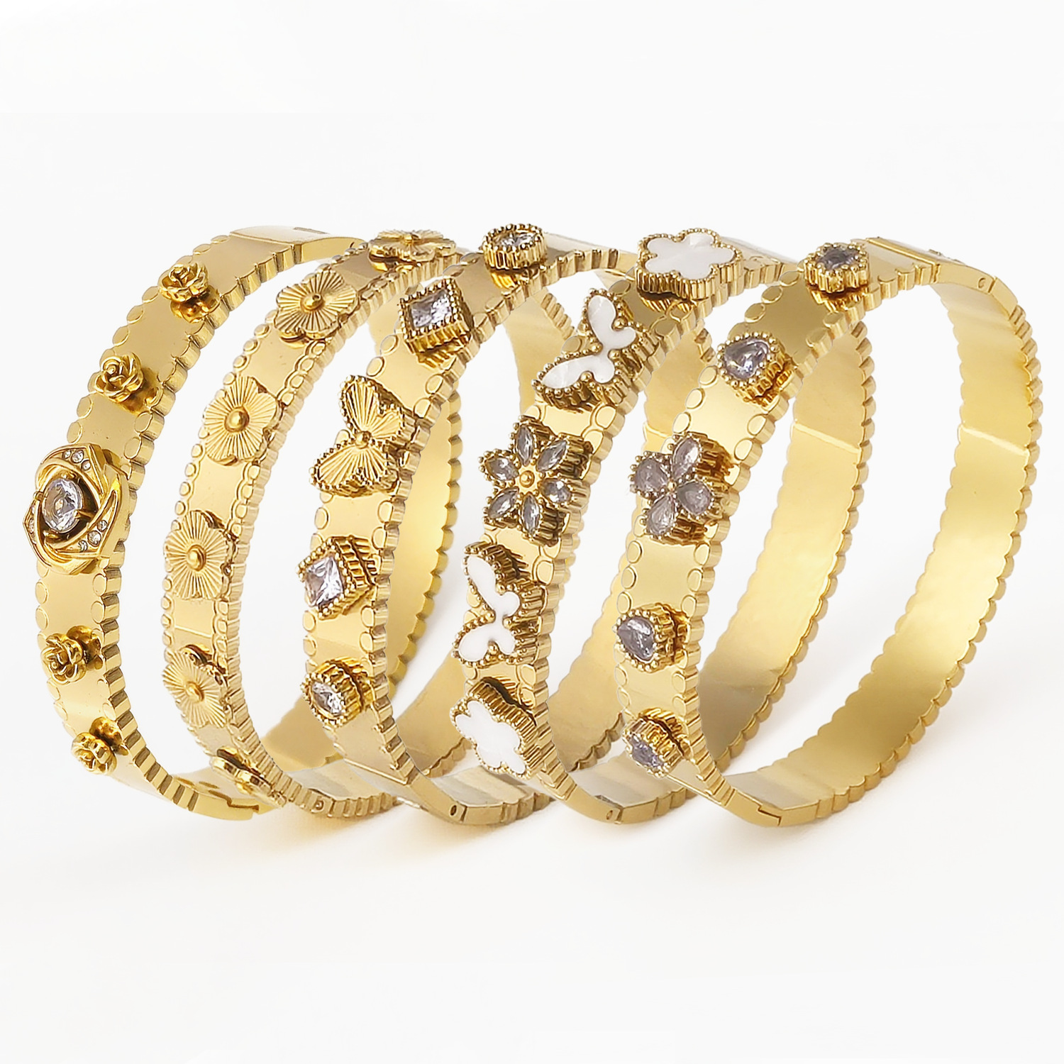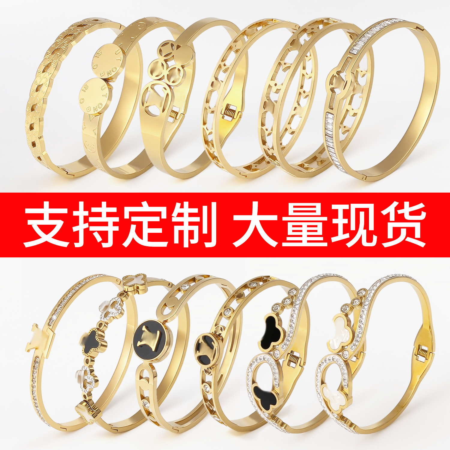 欧美跨境五叶花万花筒钛钢手镯不掉色18k金手环手饰首饰配件批发