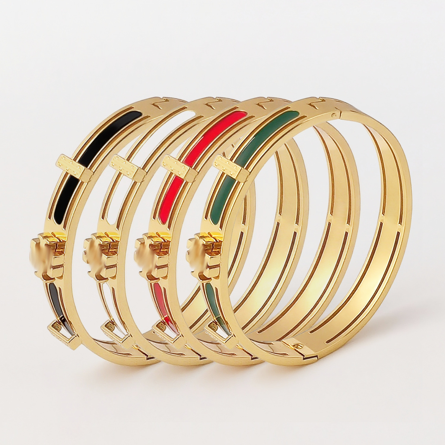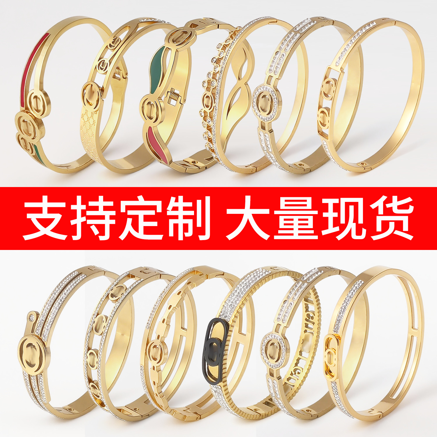 欧美跨境古家g家钛钢手镯不掉色饰品珐琅滴油镶钻手环手饰首饰