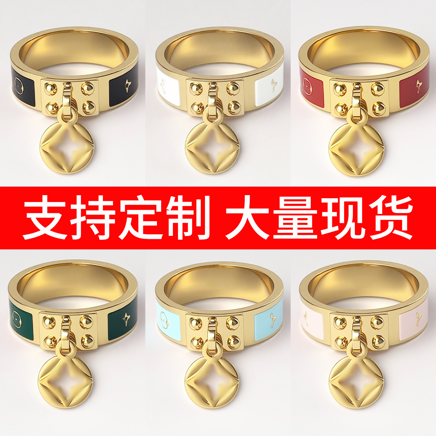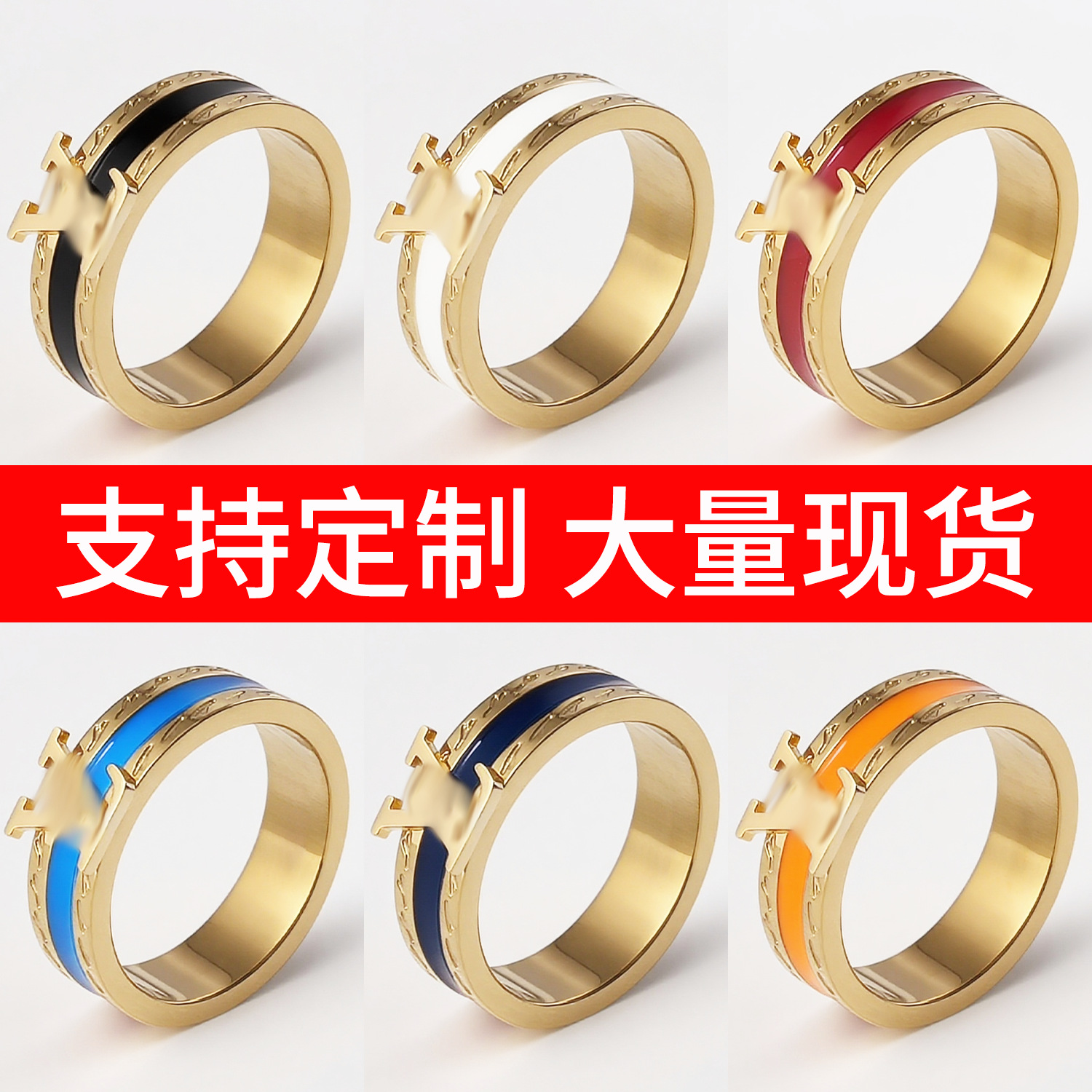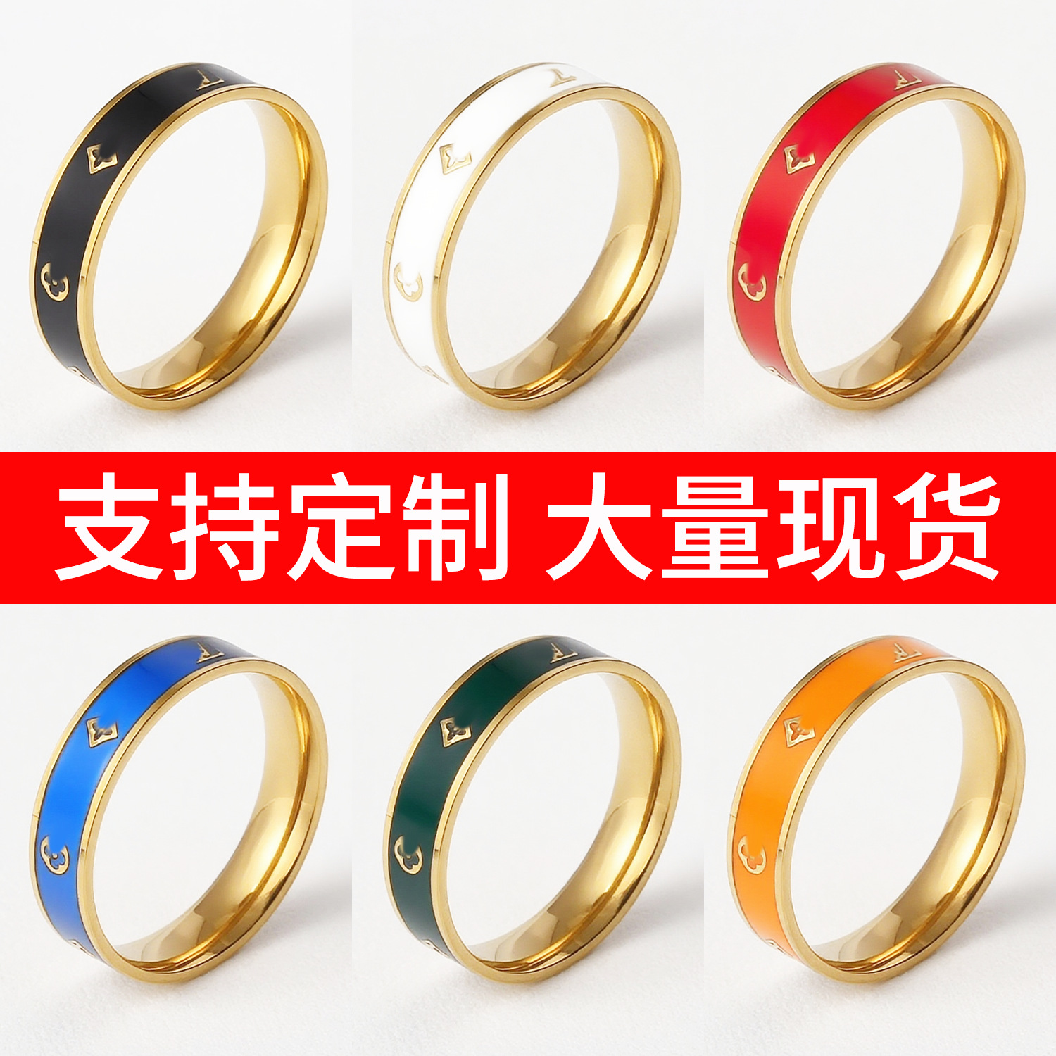 欧美跨境驴家钛钢戒指不掉色饰品珐琅滴油指环轻奢首饰手饰配饰