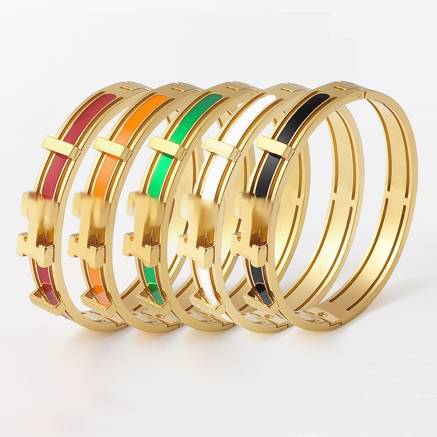 欧美跨境爱家H家h钛钢手镯不掉色饰品珐琅滴油手环轻奢手饰首饰
