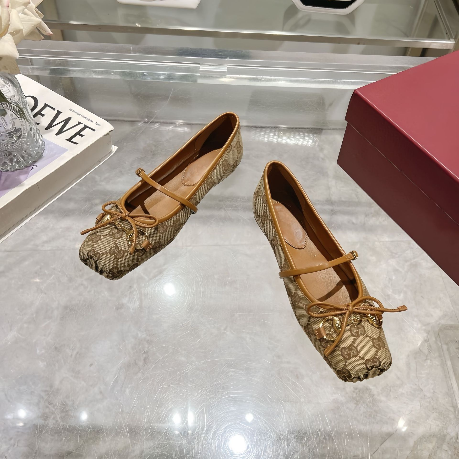 25夏季G家芭蕾舞鞋马衔扣秀场猪鼻子蝴蝶结平底大码真皮单鞋低跟
