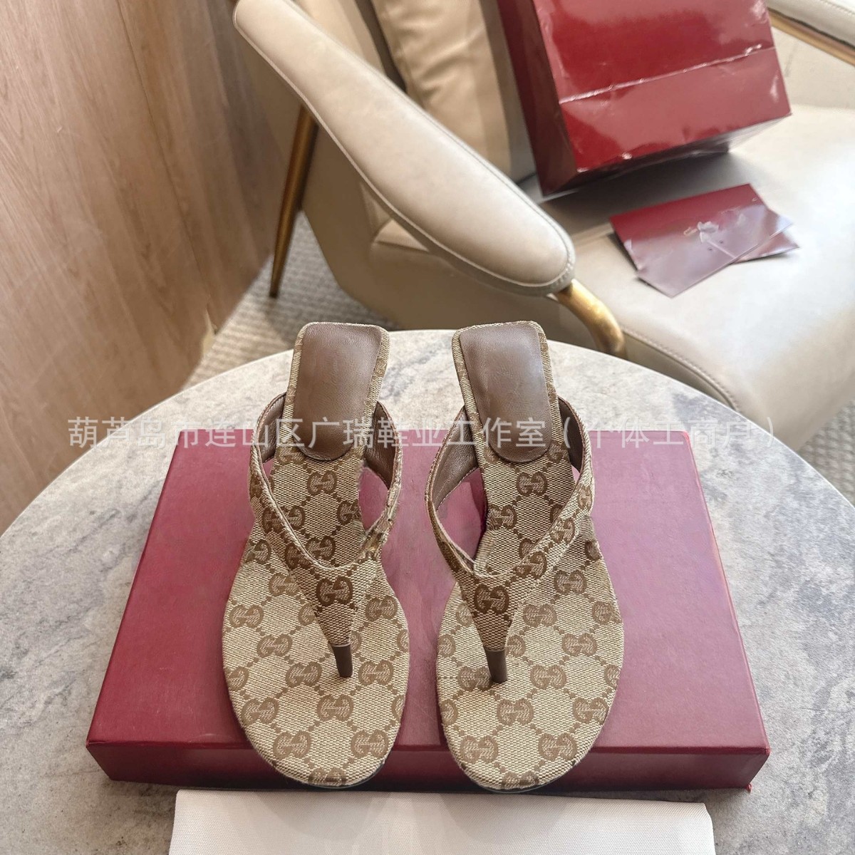 G家26春夏新款女士GG帆布高跟夹脚拖鞋凉鞋细跟时装鞋大码真皮