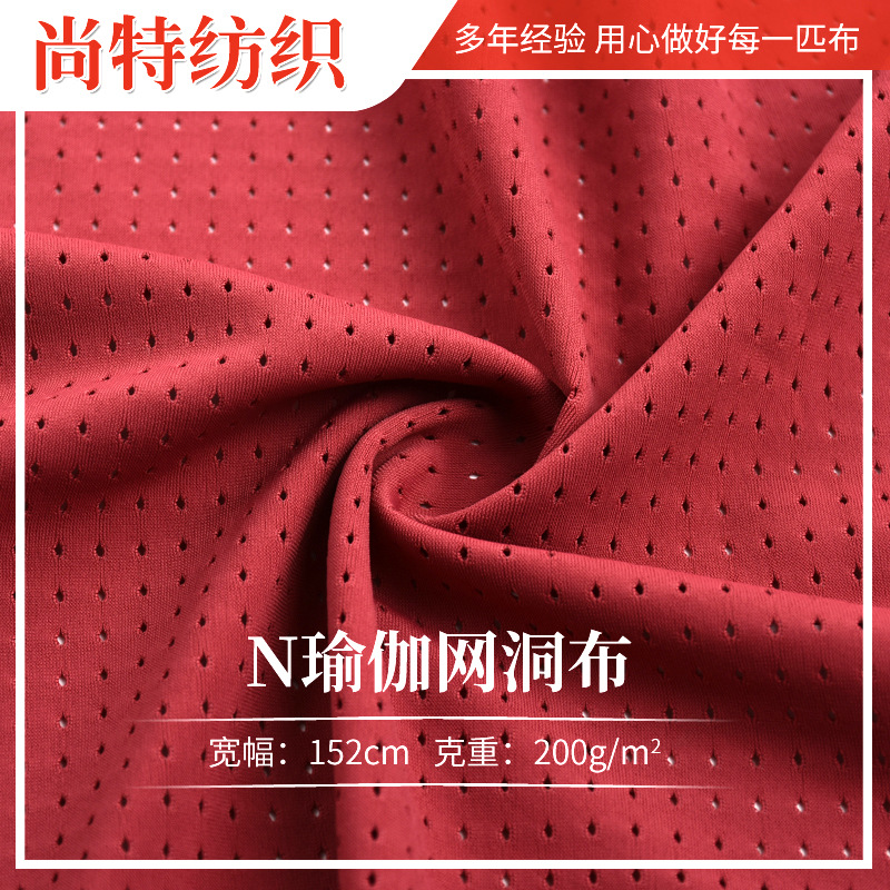 现货批发N瑜伽网洞布锦纶弹力运动面料透气瑜伽服健身套装布料