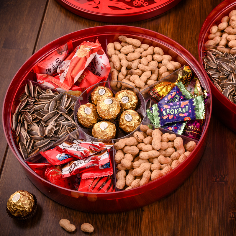 结婚庆用品分格收纳盒红色喜盘婚礼喜庆果盘干果盒家用客厅糖果盒
