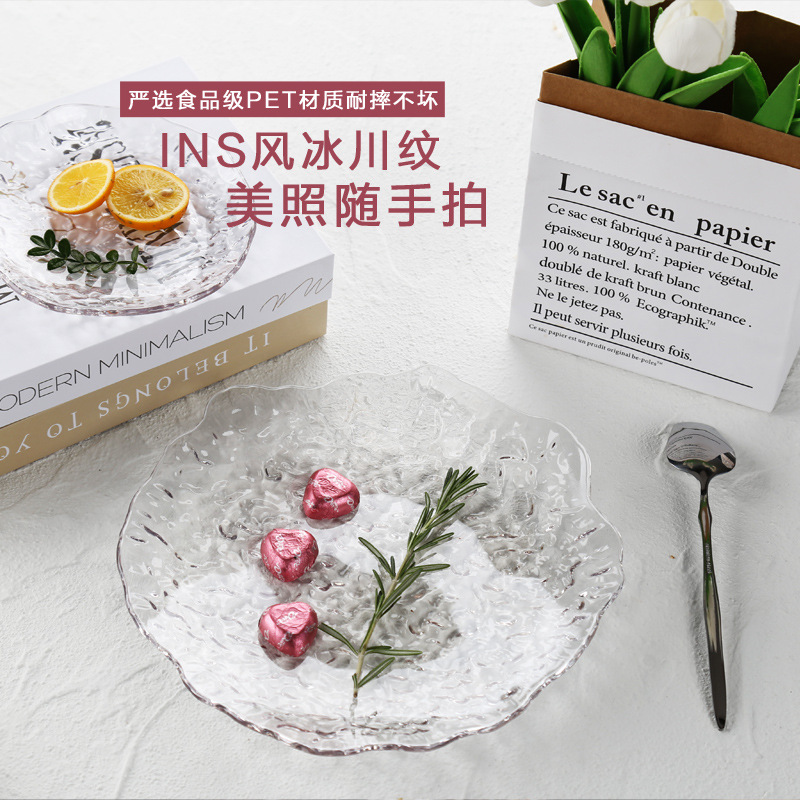 冰川纹盘客厅茶几加厚透明糖果盘子不规则点心盘沙拉盘家用水果盘