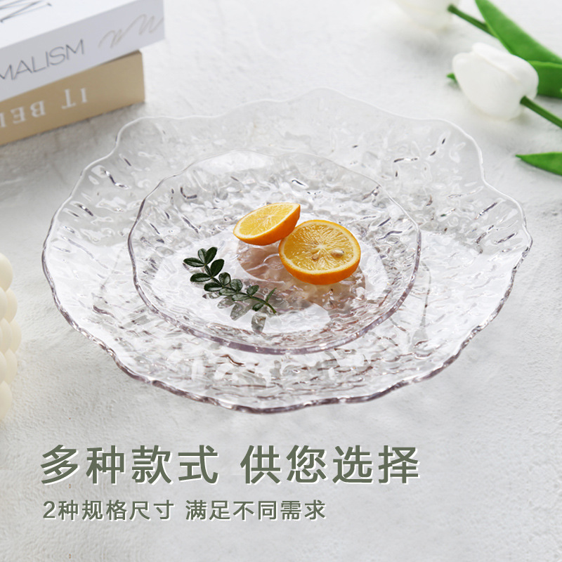 盘子高颜值 ins冰川纹餐盘果盘家用批发轻奢吐骨碟平盘餐桌透明盘