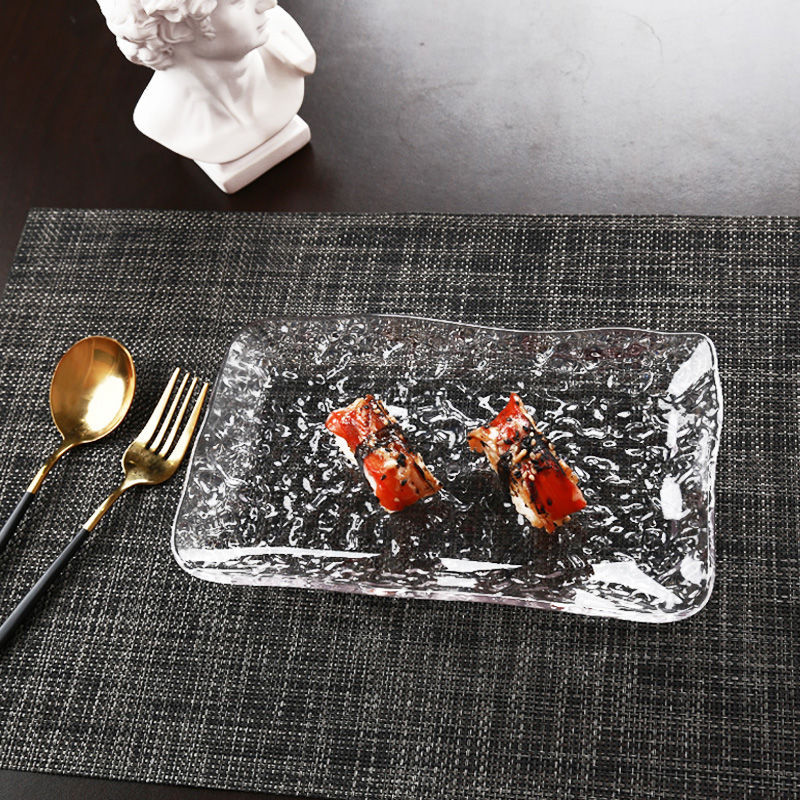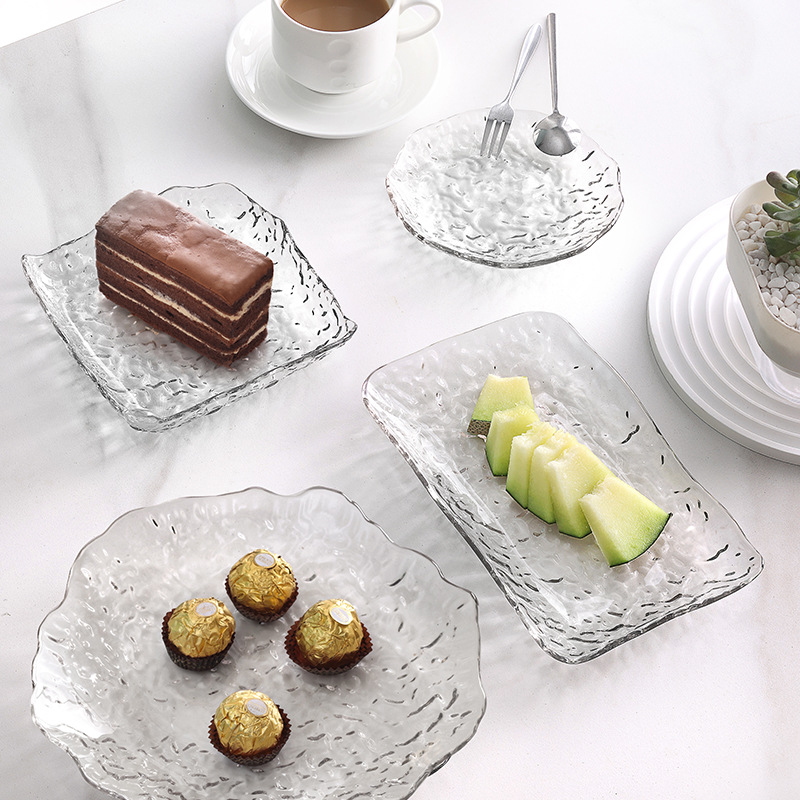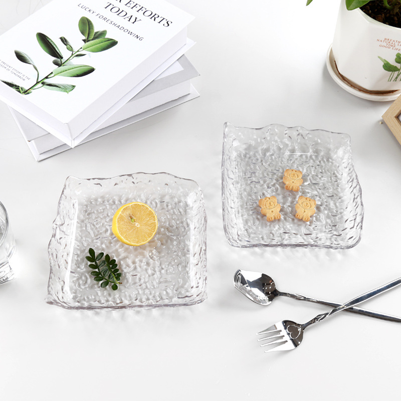 水果盘方形日式冰川纹盘子家用不规则点心碟坚果零食盘透明甜品盘