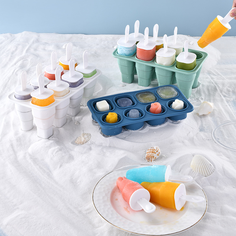 雪糕模具 冰棒冰淇淋容器冰模家用自制冰盒食品级8格硅胶折叠冰格