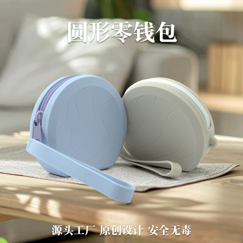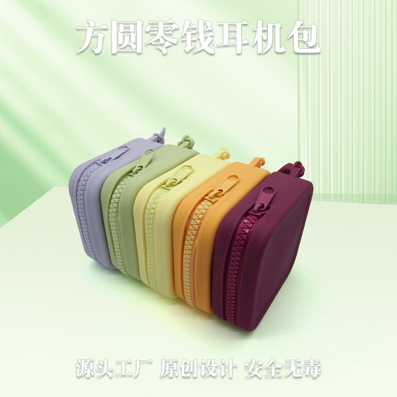 亚马逊硅胶零钱包小钱包硅胶耳机首饰简约圆形收纳包挂件防水抗压