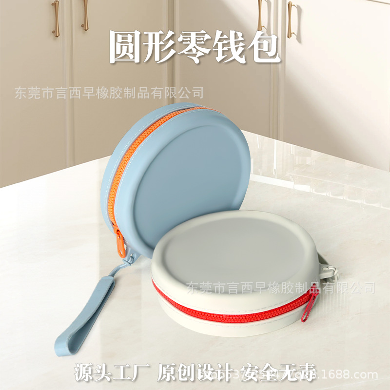 圆形硅胶零钱包儿童迷你钱包成人耳机首饰口红粉扑包钥匙收纳包